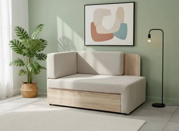 Имеется вместительный ящик для хранения из ламинированной плиты.